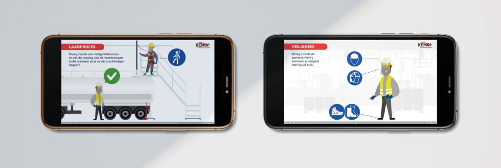 Mascotte en figuren Om de veiligheidsinstructies duidelijk in beeld te kunnen brengen, creëerden we voor Kemin een mascotte en figuren. De mascotte is een leuke laborant die dankzij zijn looks geen concreet persoon uitbeeldt. Zo blijft de mascotte een neutraal gegeven. De figuren stellen de Kemin-medewerkers, contractors of transporteurs voor. Zij zorgen voor meer herkenbaarheid […]